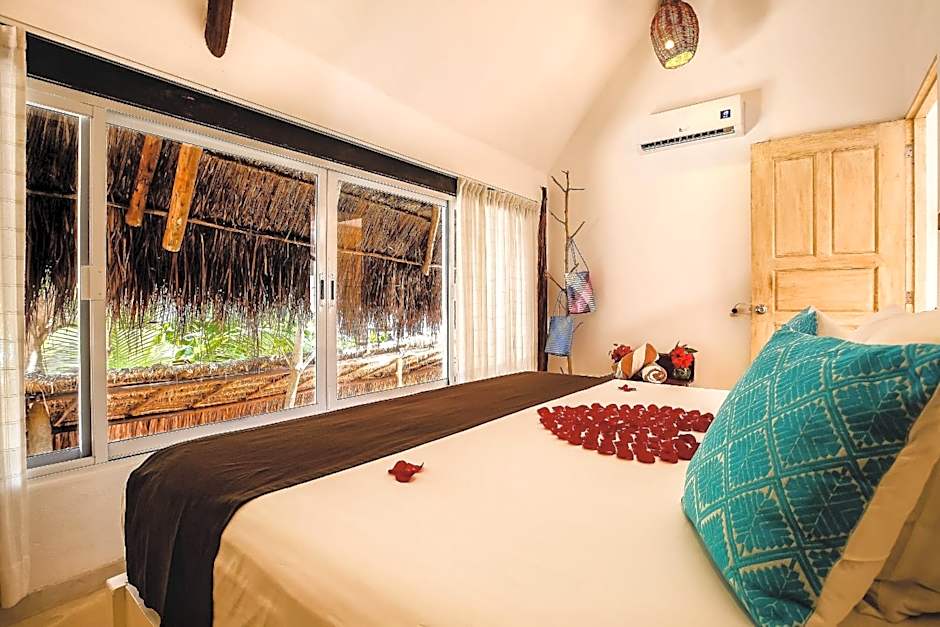 This double room has a garden view and air conditioning Balcony with hammock and chairs, private rooftop terrace with hot tub, lounge chairs and sofa, coffee machine and a mini-bar, yoga mat, bathroom amenities, hairdryer, safety box, beach bag and beach towels 24 hours AC